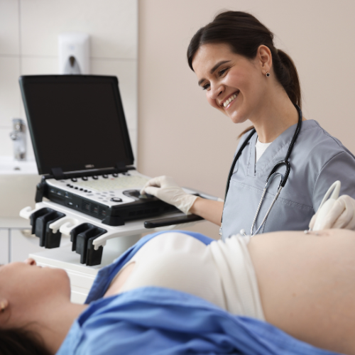 Acompanhamento da gestação por meio de exames obstétricos e morfológicos em diferentes fases da gravidez.